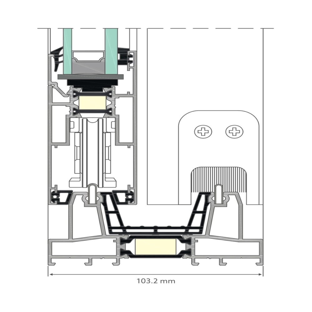 Profondeur de construction profil de dormant 103,2 mm/163,8 mm et profil de battant 42,6 mm