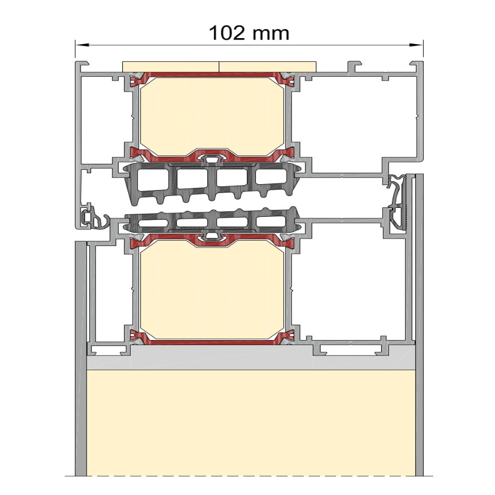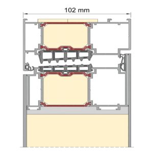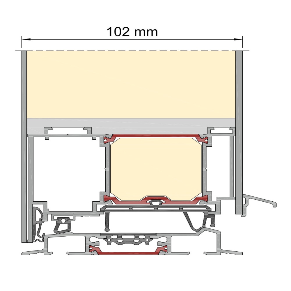Adancimea structurala a usii: Profilul ramei 102 mm si Profilul canatului 102 mm