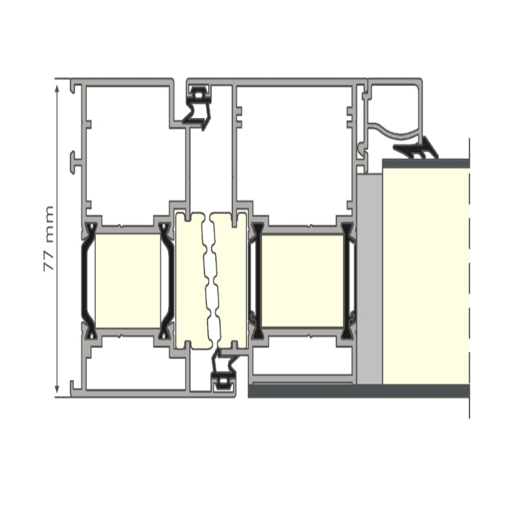 Solutia va permite sa realizati canatul intr-un singur plan in raport cu cadrul (profil invizibil al canatului) sau pe o singura fata plana. Datorita utilizarii unui sistem de izolatie termica cu trei camere si a unor separatoare termice noi, produsul este caracterizat de proprietati termice excelente si de capacitatea de a elimina solicitarile termice induse de diferentele de temperatura.